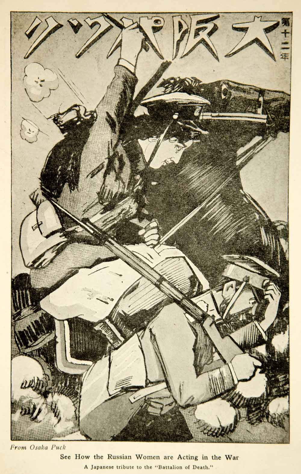 1917 Print WWI Cartoon Art Russian Women Battalion of Death Osaka Puck Japanese