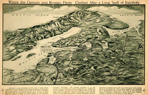 1917 Rotogravure Map WWI Baltic Sea Gulf of Riga Finland Germany Russia YNY3