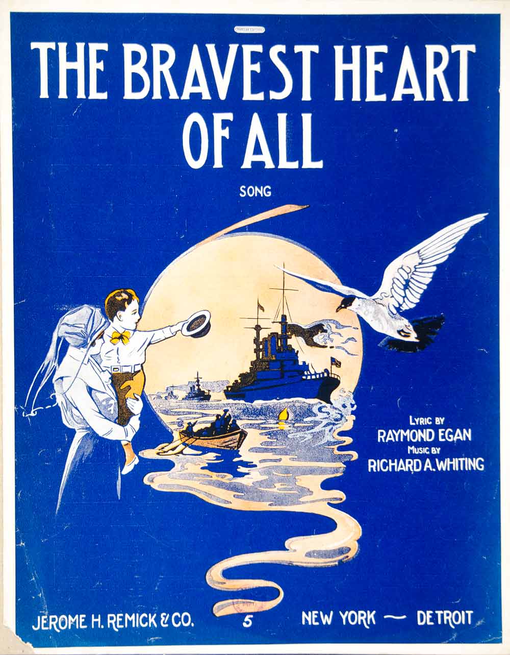 1917 Sheet Music The Bravest Heart of All WWI Song Mother Boy Battleship ZSM7