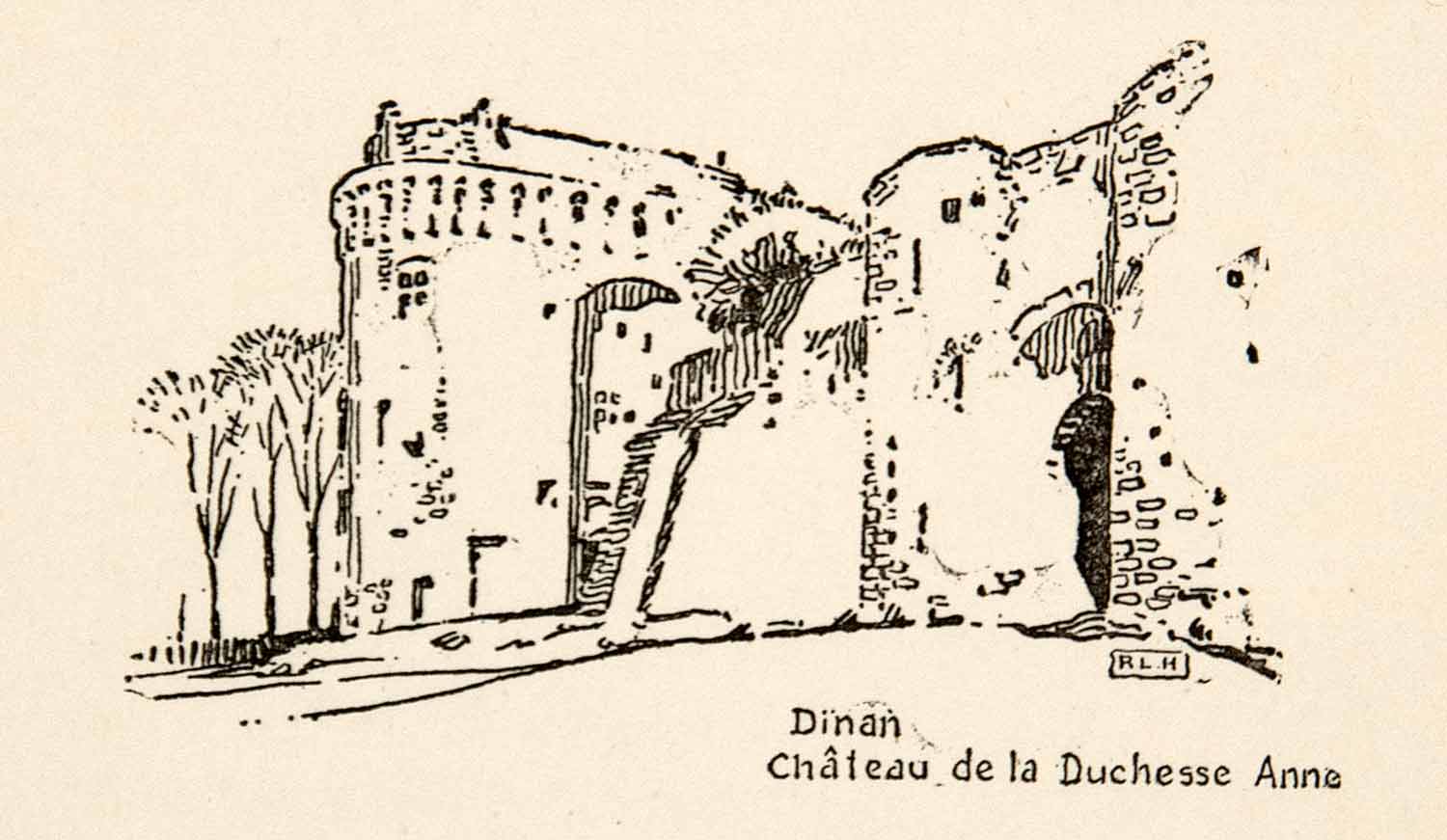 This is an original 1917 black and white in-text wood engraving of "Dinan, Château de a Duchesse Anne," in France.