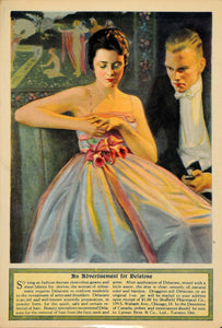 This is a rare original 1918 color print ad for Delatone hair remover. The ad features a beautiful image of a newly engaged couple-- please note the thrilled expressions on their faces.