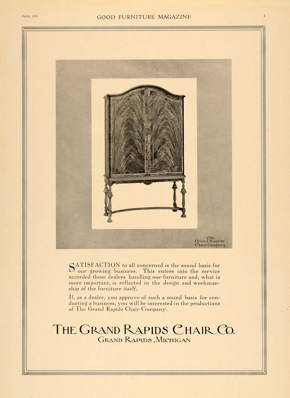 This is an original 1918 black and white print ad for a wardrobe by The Grand Rapids Chair Company located in Grand Rapids, Michigan.