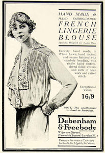 This is an original 1918 black and white print ad for handmade and hand embroidered French lingerie blouses specially designed for Easter wear by Debenham & Freebody.