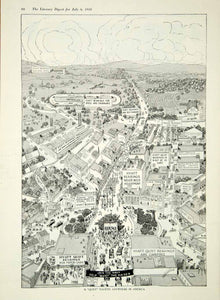 Keywords specific to this image: Vintage Advertising, Aerial, Airplane, Clouds, Hills, Trees, Buildings