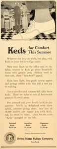 This is an original 1918 black and white print ad for Keds Comfortable Shoes from the United States Rubber Co. located in New York. This ad shoes the three most popular brand of Keds and also states how they are comfortable for walking and playing. Perfect for children.