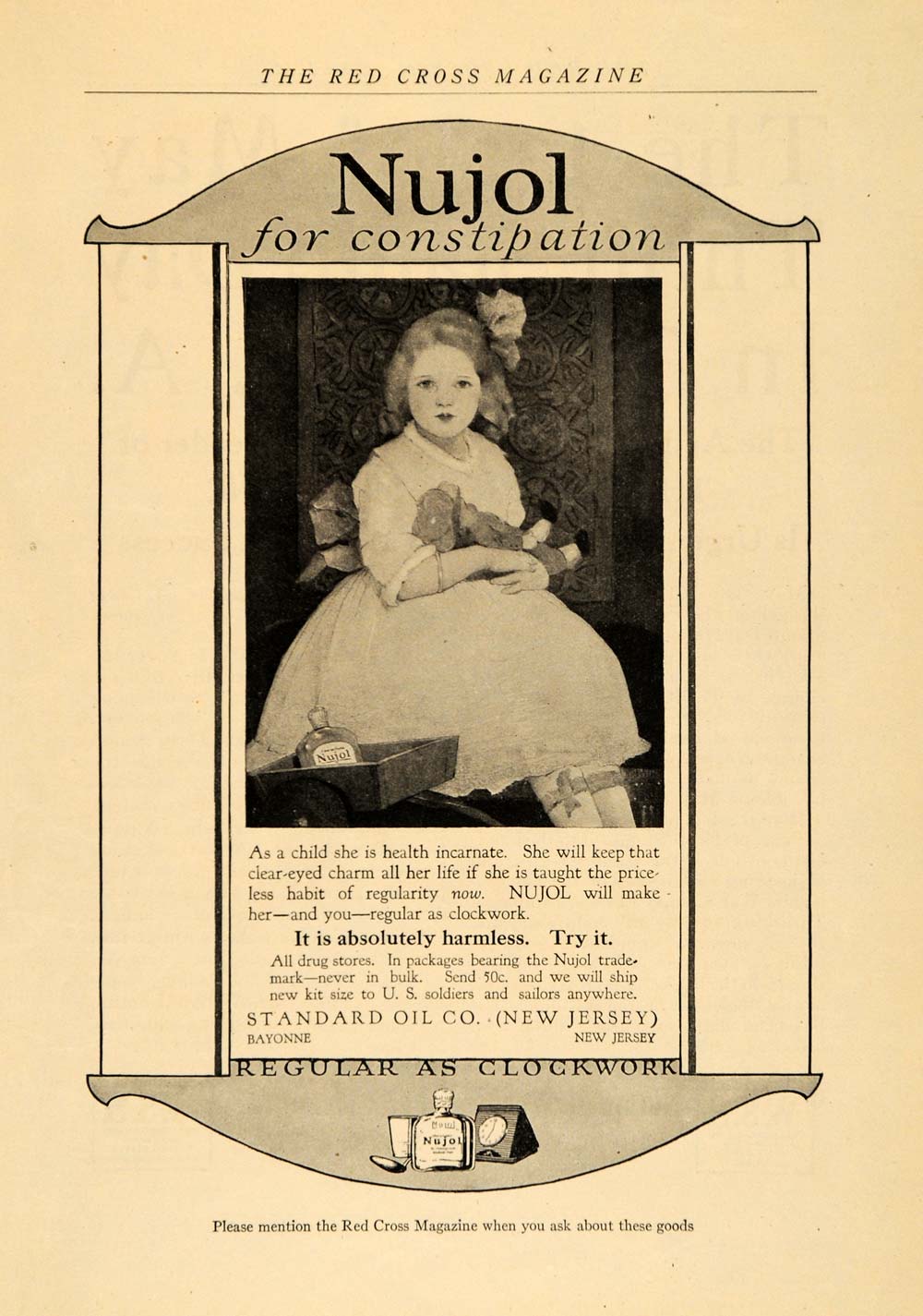 1918 Ad Nujol Constipation Cure Girl Standard Oil NJ - ORIGINAL ADVERTISING RCM1