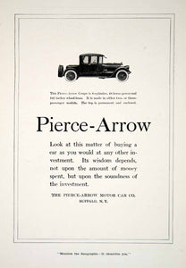 This is an original 1918 black and white print ad for the Pierce Arrow Motor Car Company, featuring their 6 Cylinder Coupe.