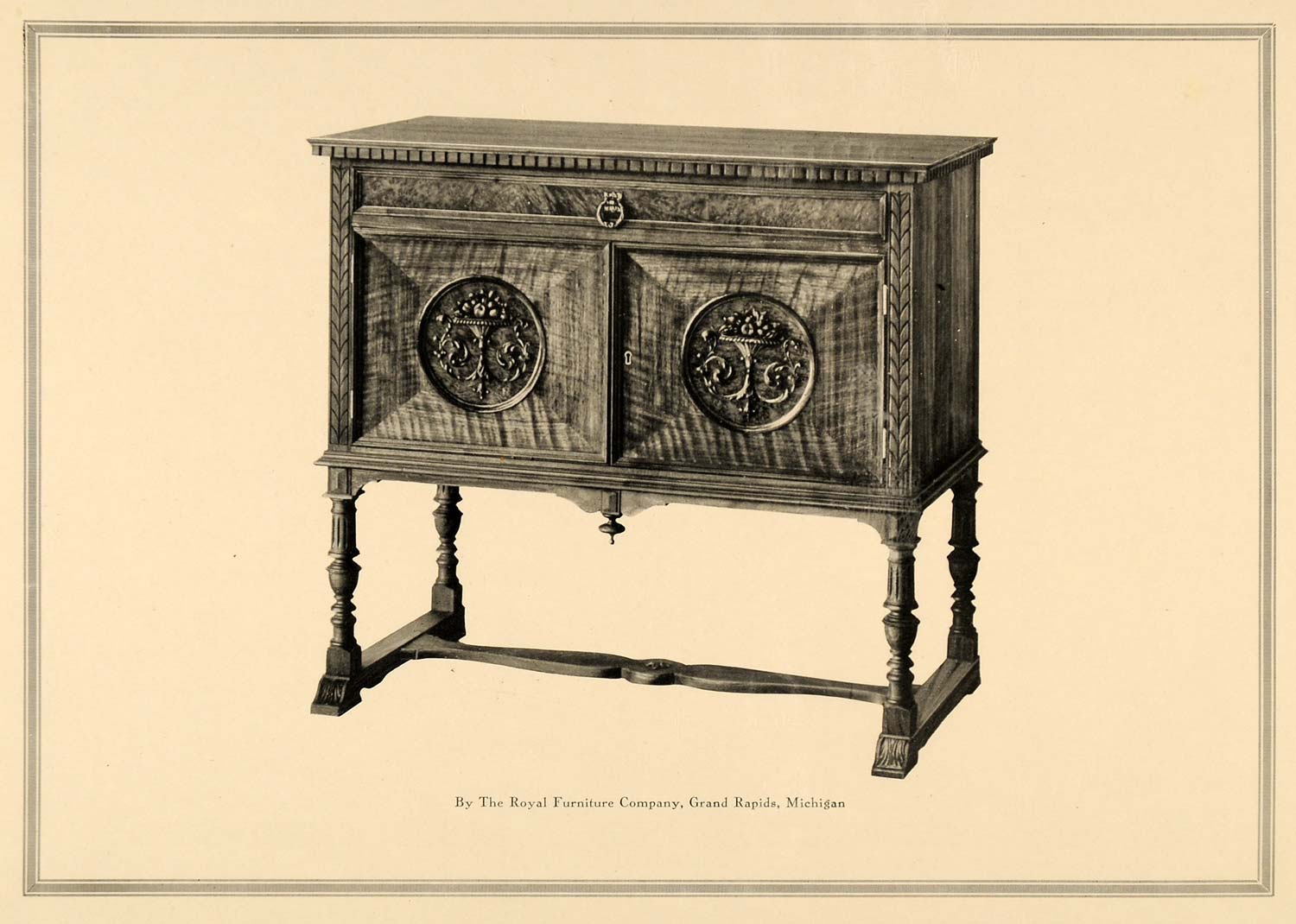 This is an original 1918 black and white print ad for the Royal Furniture Company of Grand Rapids, Michigan. This ad features a lovely wooden cabinet designed and manufactured by the company.