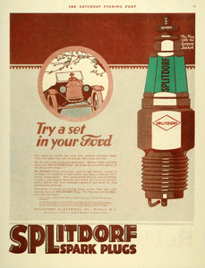 This is an original 1918 color print ad for Splitdorf Spark Plugs.