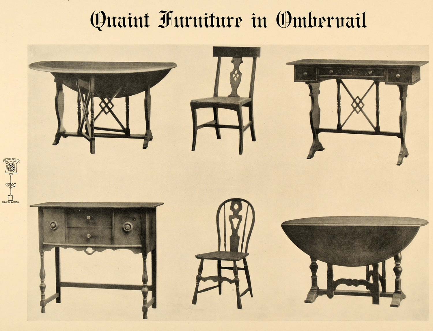 This is an original 1918 black and white print ad for furniture in Ombervail design by Stickley Brothers Company located in Grand Rapids, Michigan.