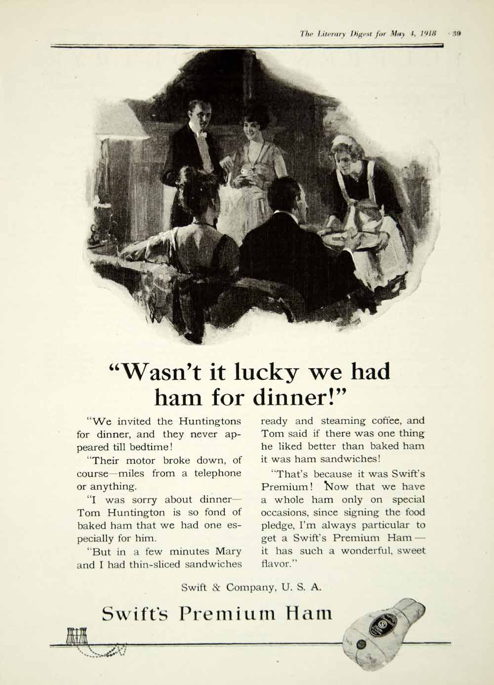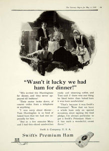 This is an original 1918 black and white print ad for the Swift & Company Premium Ham. "Tom said if there was one thin he liked better than baked ham it was ham sandwiches!"