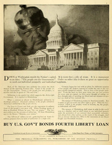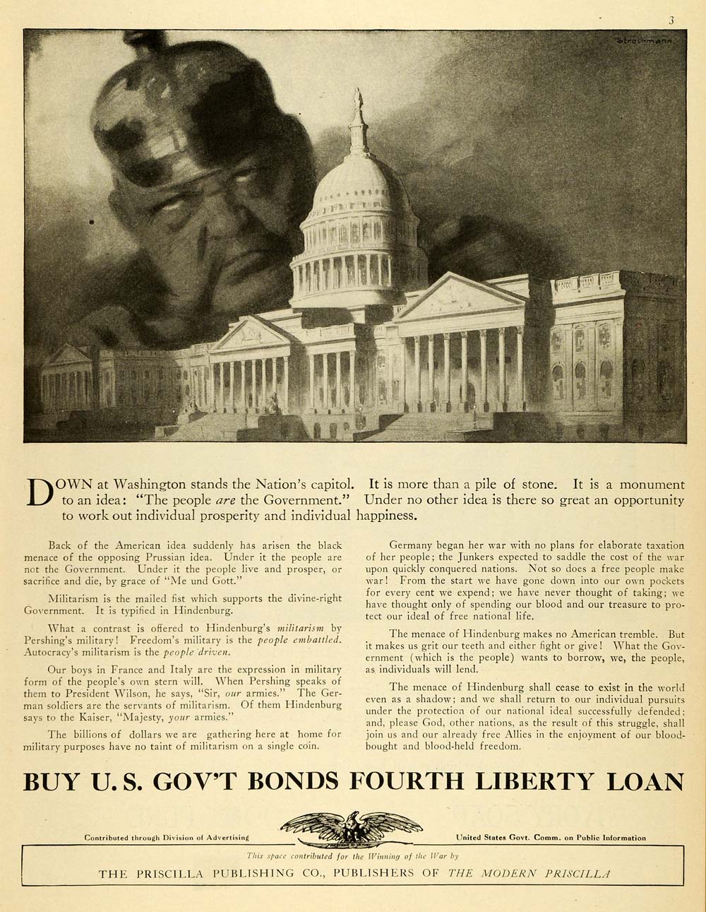 This is an original 1918 World War I black and white print ad encouraging civilians to purchase United States government war bonds.