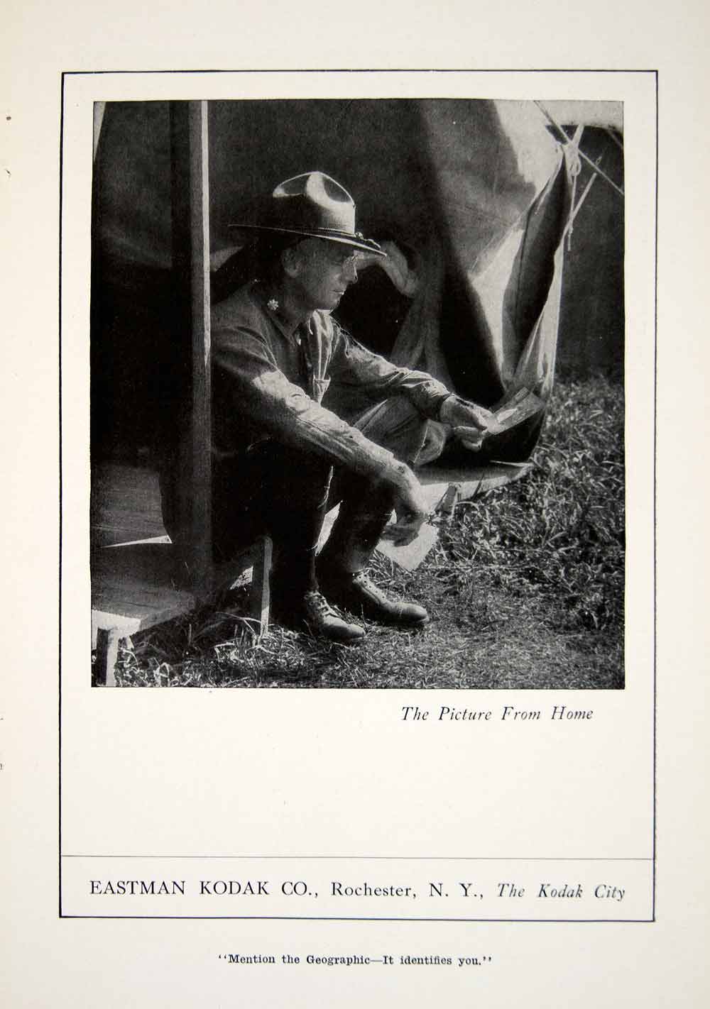 This is an original 1918 black and white wartime print ad for the Eastman Kodak Company, based in Rochester, New York.
