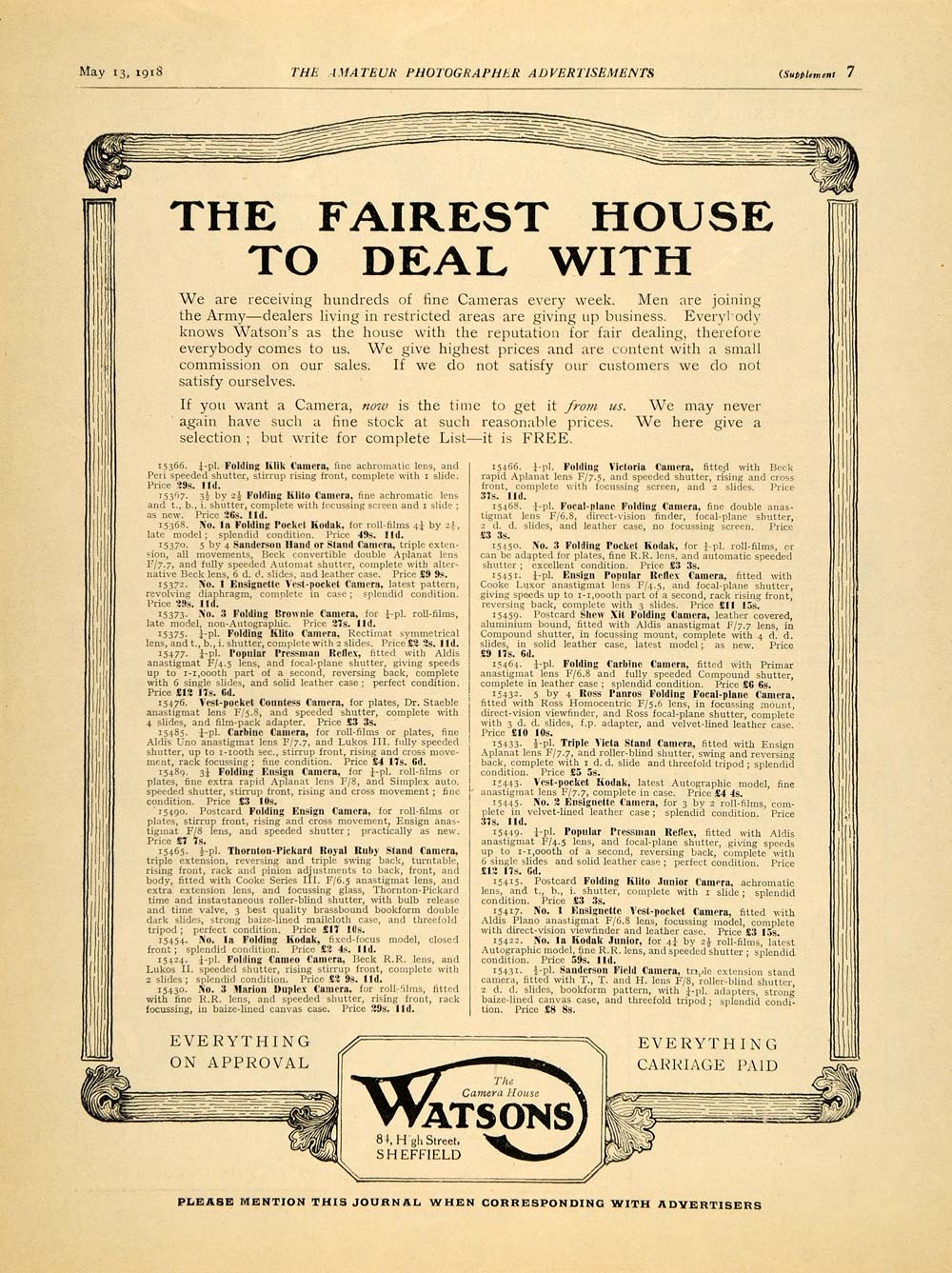 Keywords specific to this image: Folding Klik, Folding Pocket, Ensignette Vest-pocket, Folding Brownie, Carbine, Ensign, Folding Victoria, Pressman Reflex, photographic supplies, Army Vintage Advertising