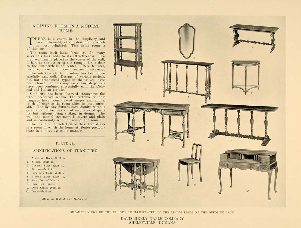 This is an original 1918 halftone print promoting the early English, Colonial and Italian style furniture from Davis-Birely Table Company located in Shelbyville, Indiana.