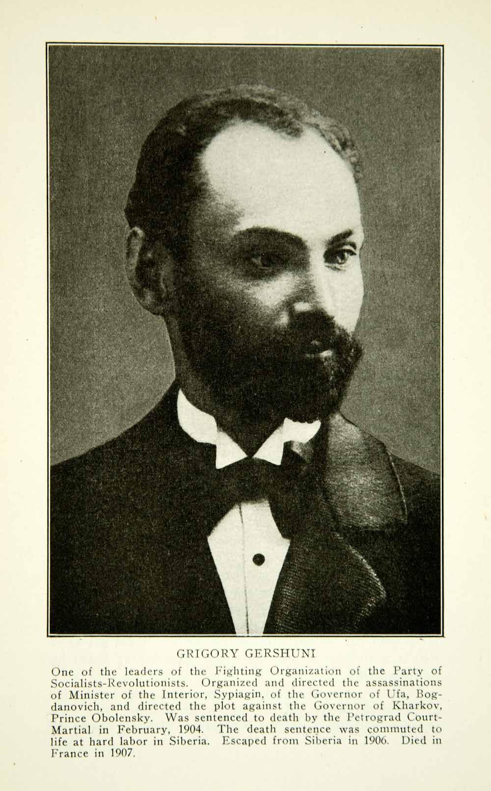 This is an original 1918 black and white halftone print of Russian revolutionary Grigory Gershuni, who organized the horrendous assassinations of government officials at the Mariinsky Palace in St. Petersburg as part of the Fighting Organization of the Party of Socialist Revolutionists.