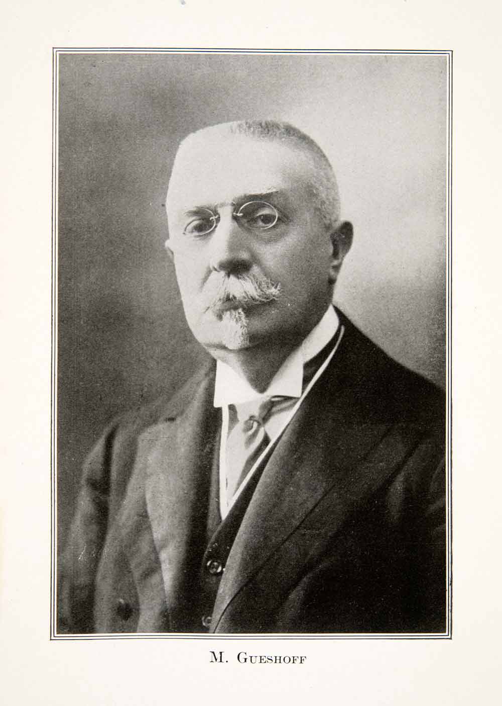 This is an original 1918 black and white halftone print portrait of M. Gueshoff.
