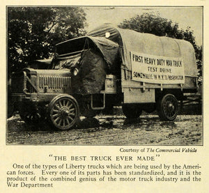 This is an original 1918 World War I halftone print of a heavy duty Liberty Truck.