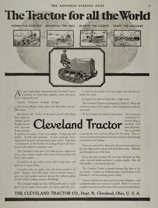 This is an original 1918 black and white print ad for the Cleveland Tractor, designed by Rollin H. White, from The Cleveland Tractor Co., Cleveland, Ohio.