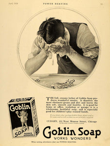 This is an original 1919 black and white print ad for Cudahy's Goblin Soap, located at 111 West Monroe Street in Chicago, Illinois. It works wonders.