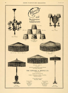 This is an original 1919 black and white print ad for the Edward N. Riddle Company, located in Toledo, Ohio. Their Selling Agents are Crucet Manufacturing (292 Fifth Avenue in New York), and Kerr Sales Agencies (667 Mission Street in San Francisco). This ad features their Vellumesque shades and lamps.