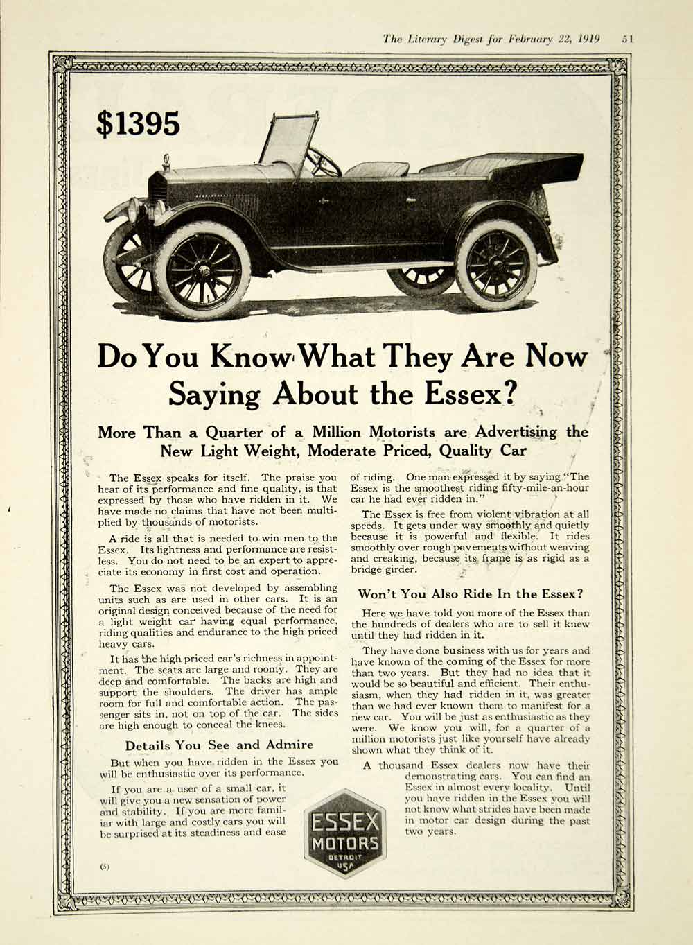 Keywords specific to this image: Vintage Advertising, Auto, Automotive, Car, Classic, Collector, Vehicle, Transportation, Machine, Mechanical, Michigan, American, Domestic, Chassis, White Wall Tires