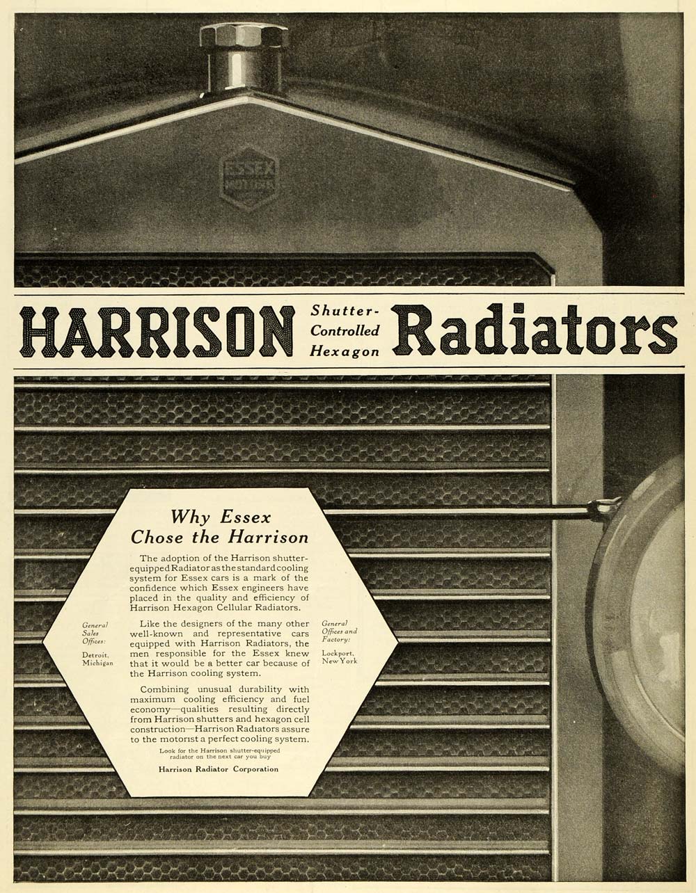 This is an original 1919 black and white print ad for the Harrison Radiators from Harrison Radiator Corporation located in Detroit, Michigan.
