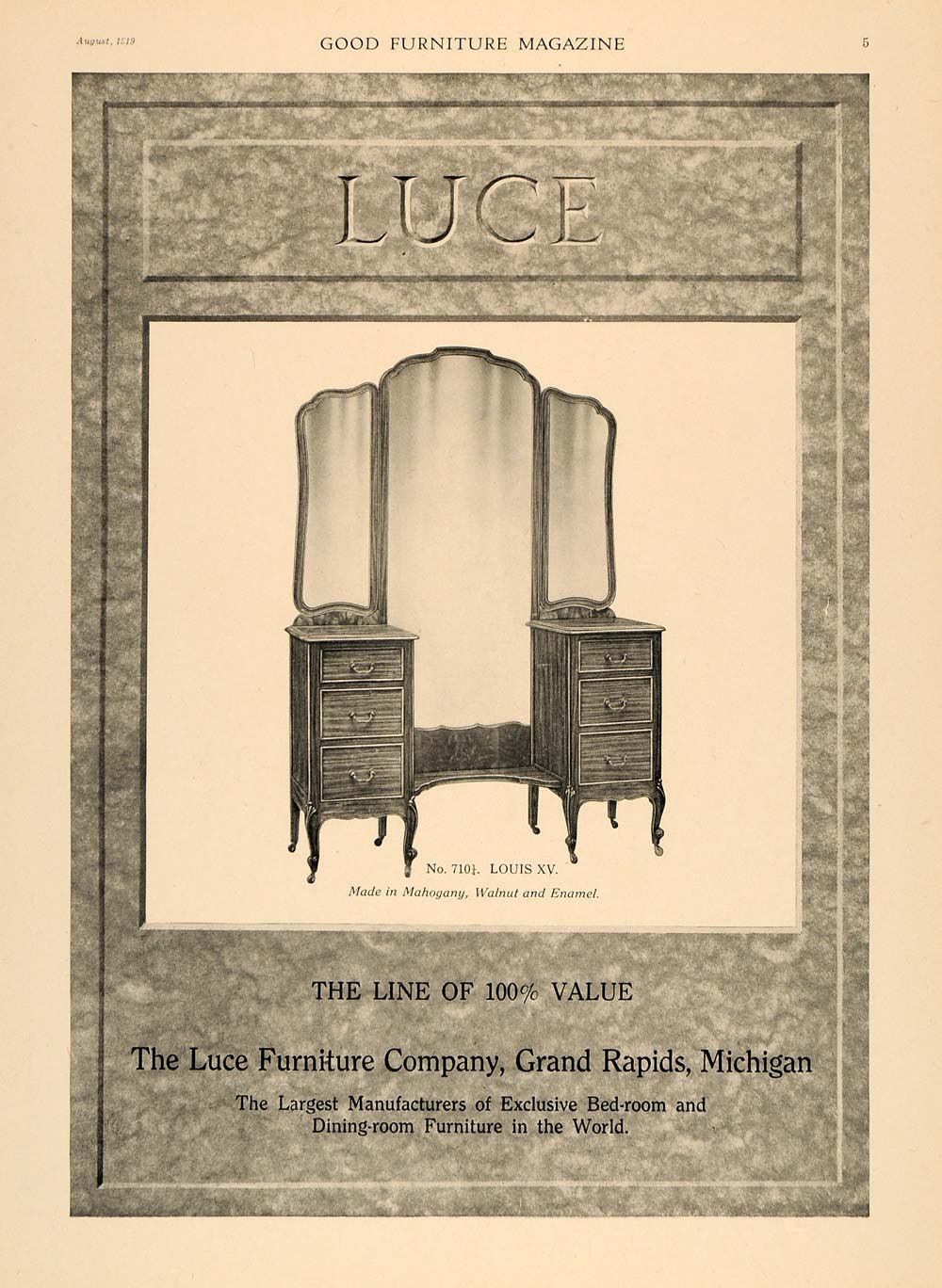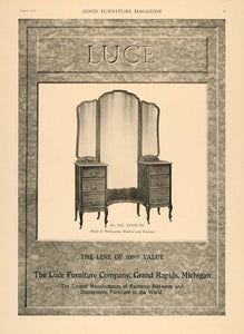 This is an original 1919 black and white print ad for the Luce Furniture Company located in Grand Rapids, Michigan, the largest manufacturers of exclusive bedroom and dinning room furniture.