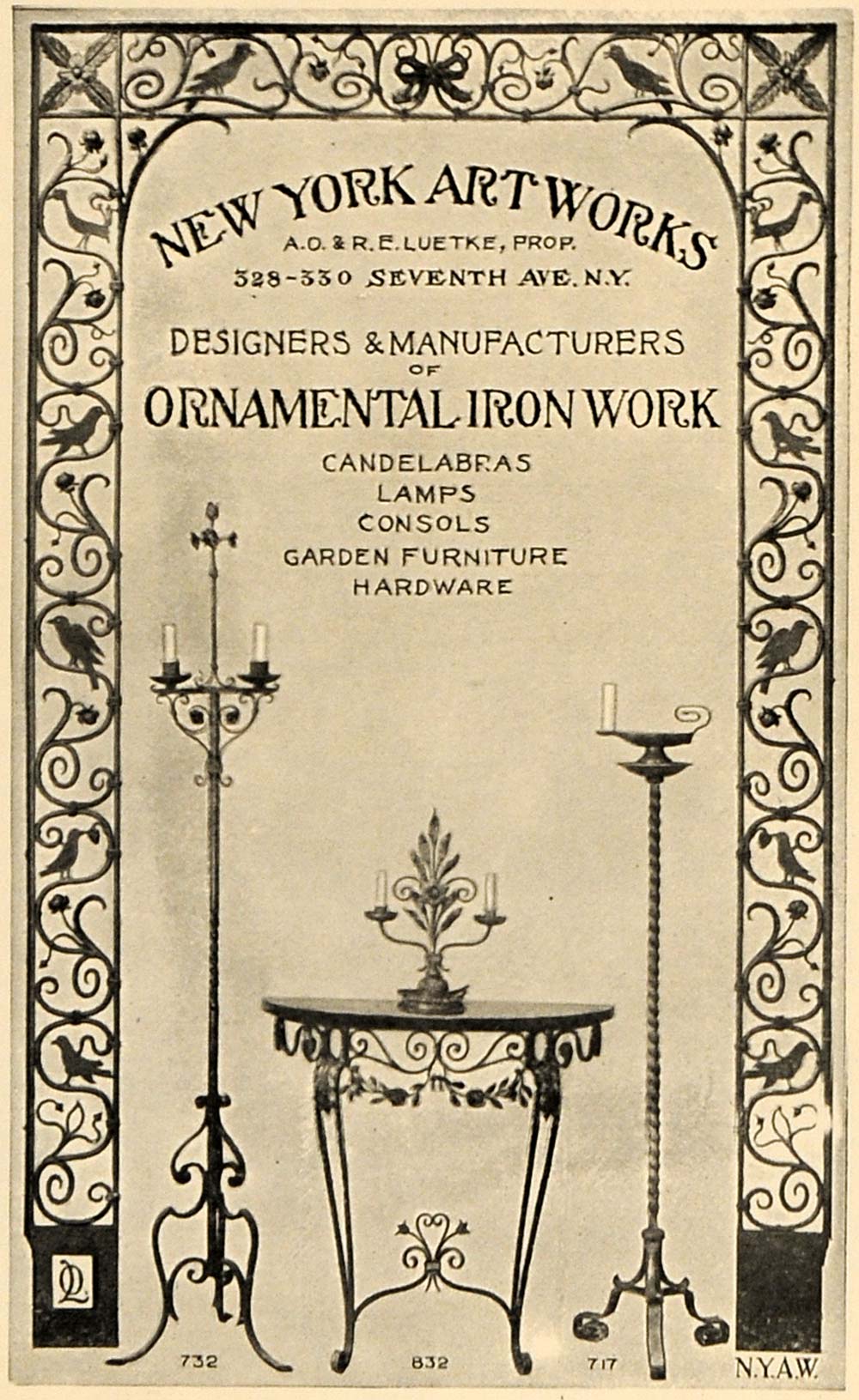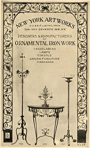 This is an original 1919 black and white print ad for New York Art Works' Ornamental Iron Work.