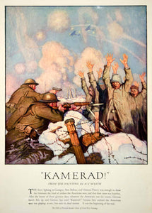 1919 Color Print N.C. Wyeth Art WWI German Soldiers Surrendering American Trench