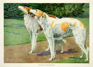 This is an original 1919 color print of a pair of Russian Wolfhounds by Louis Agassiz Fuertes.