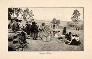 This is an original 1919 black and white halftone print of locals at the plaza in Mizque, Bolivia as it would have appeared around the turn of the century.