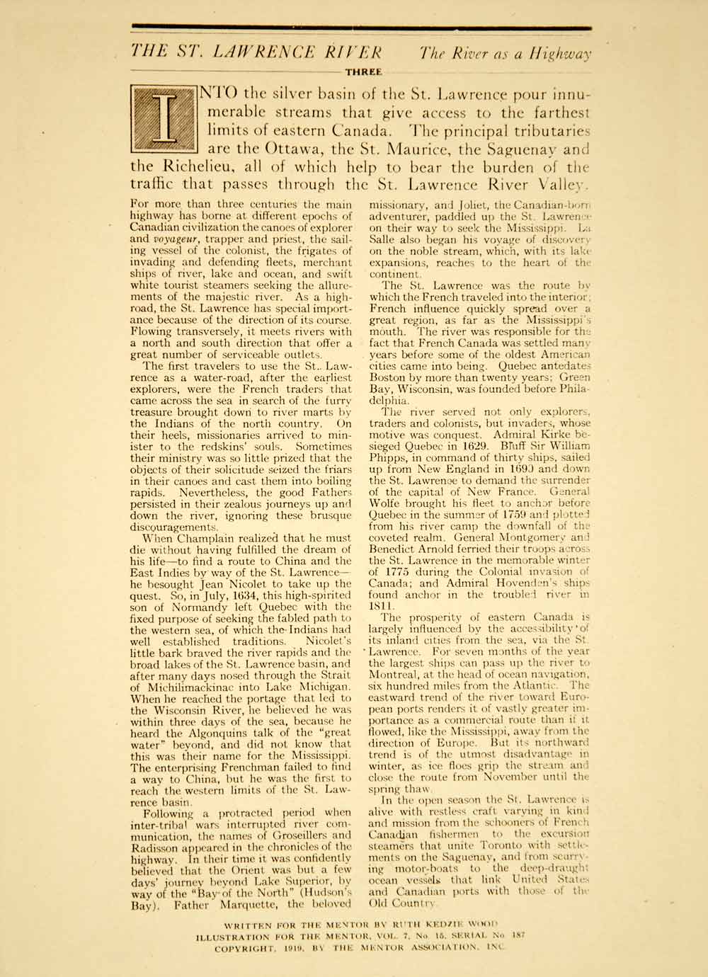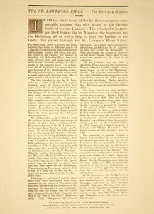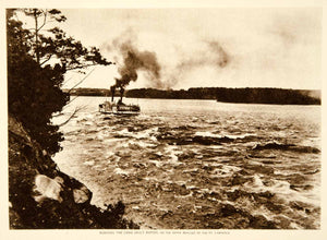 This is an original 1919 sepia photogravure of a steamer running the Long Sault Rapids on the upper reaches of the St. Lawrence River. Please note that there is a brief descriptive text about the history of the St. Lawrence River as a highway on the reverse. Please see both images.
