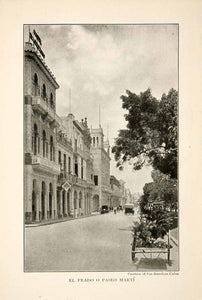 This is an original 1919 black and white halftone print of El Prado o Paseo Martí in Havana, Cuba.