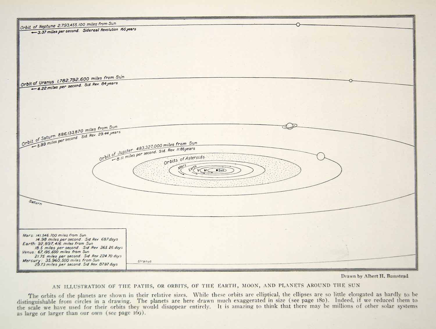 This is an original 1919 black and white halftone print of orbits of the planets in our solar system, as far out as Neptune.