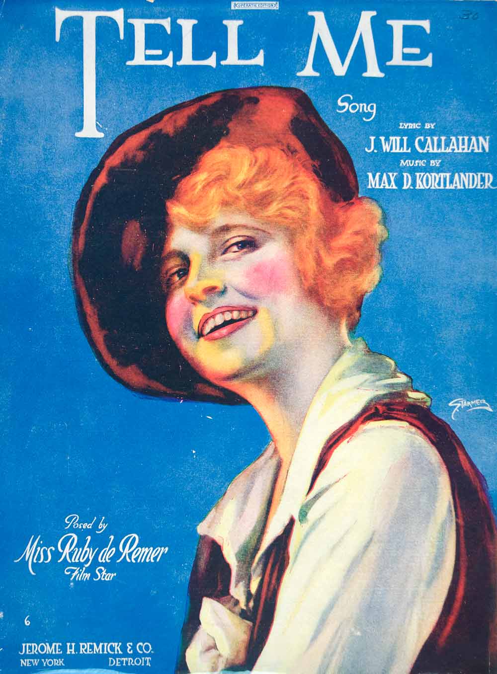 1919 Sheet Music Tell Me William Austin Starmer Art Ruby De Remer Pose Film SM3