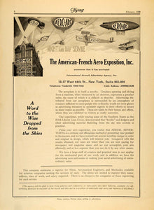 This is an original 1920 black and white print ad announcing The American-French Aero Exposition's purchase of the International Aircraft Advertising Agency.