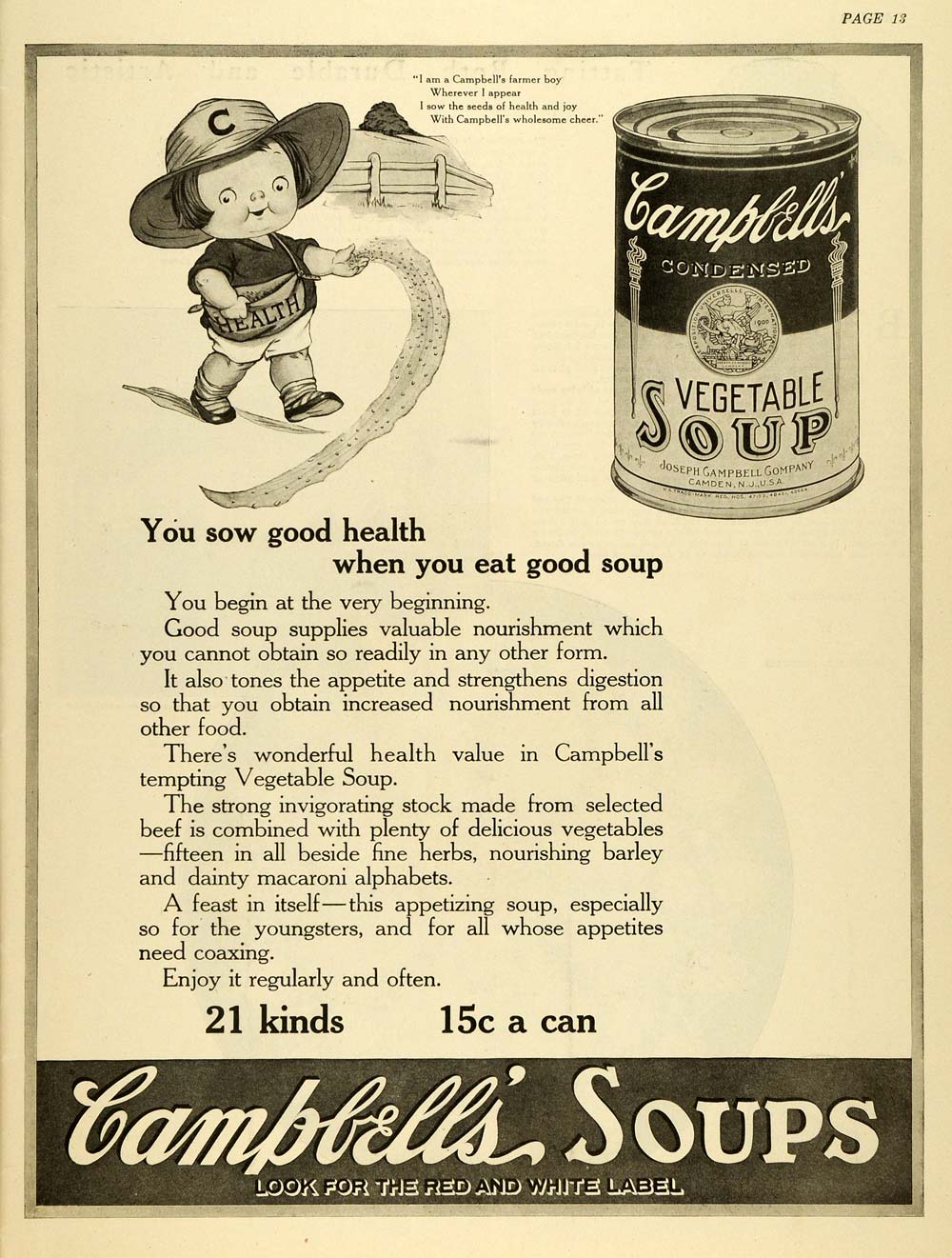This is an original 1920 black and white print ad for Campbell's Vegetable Soup.