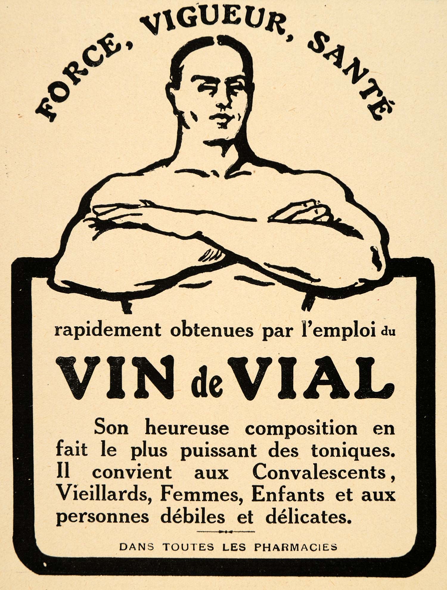 This is an original 1920 black and white print ad for Vin de Vial, tonic for strength, vigor, and health.