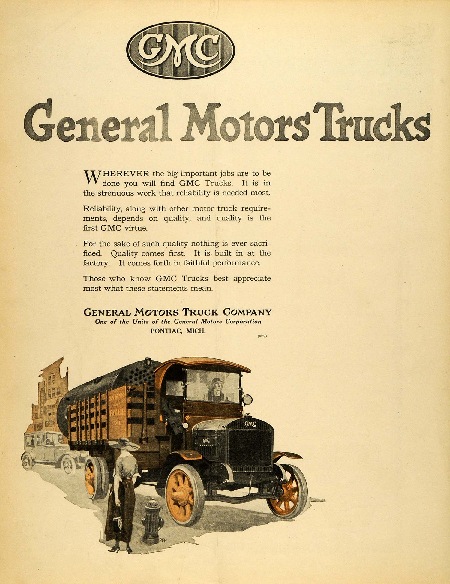 This is an original 1920 two-color print ad for the General Motor Trucks from General Motors Truck Company located in Pontiac, Michigan.