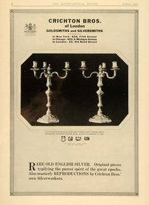 This is an original 1920 black and white print ad for Goldsmiths and Silversmiths from the Crichton Bros. located in London.
