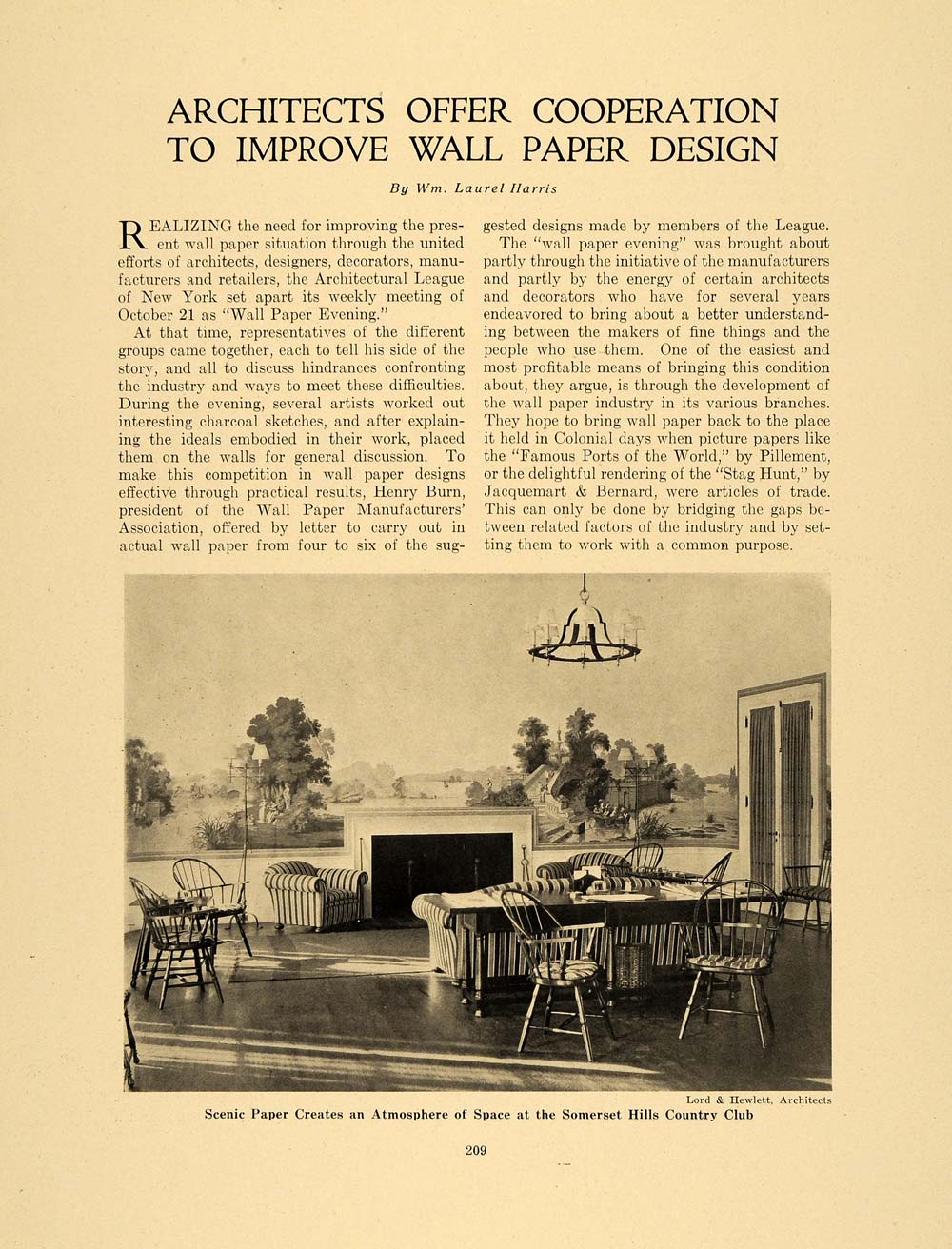 This is an original 1920 1 page article by Wm. Laurel Harris. This article is about improving the present wall paper situation.