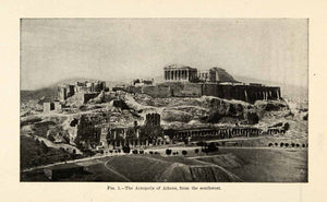 This is an original 1920 halftone print of the Acropolis of Athens, Greece, as viewed from the southwest.