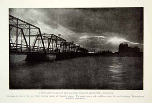 This is an original 1920 black and white halftone print of the Missouri River at Great Falls in Montana.