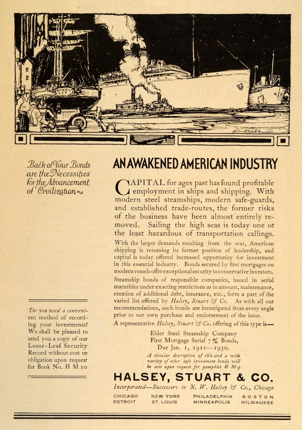 This is an original 1920 black and white print ad for Halsey, Stuart & Co.