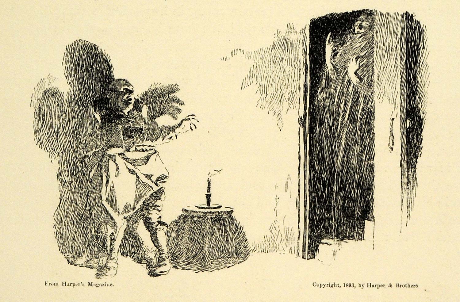 1920 Wood Engraving Howard Pyle Art Cock Lane Ghost Mythical Scare XDA7