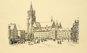 This is an original 1920 black and white wood engraving of "Roermond, Vue Du Marche."