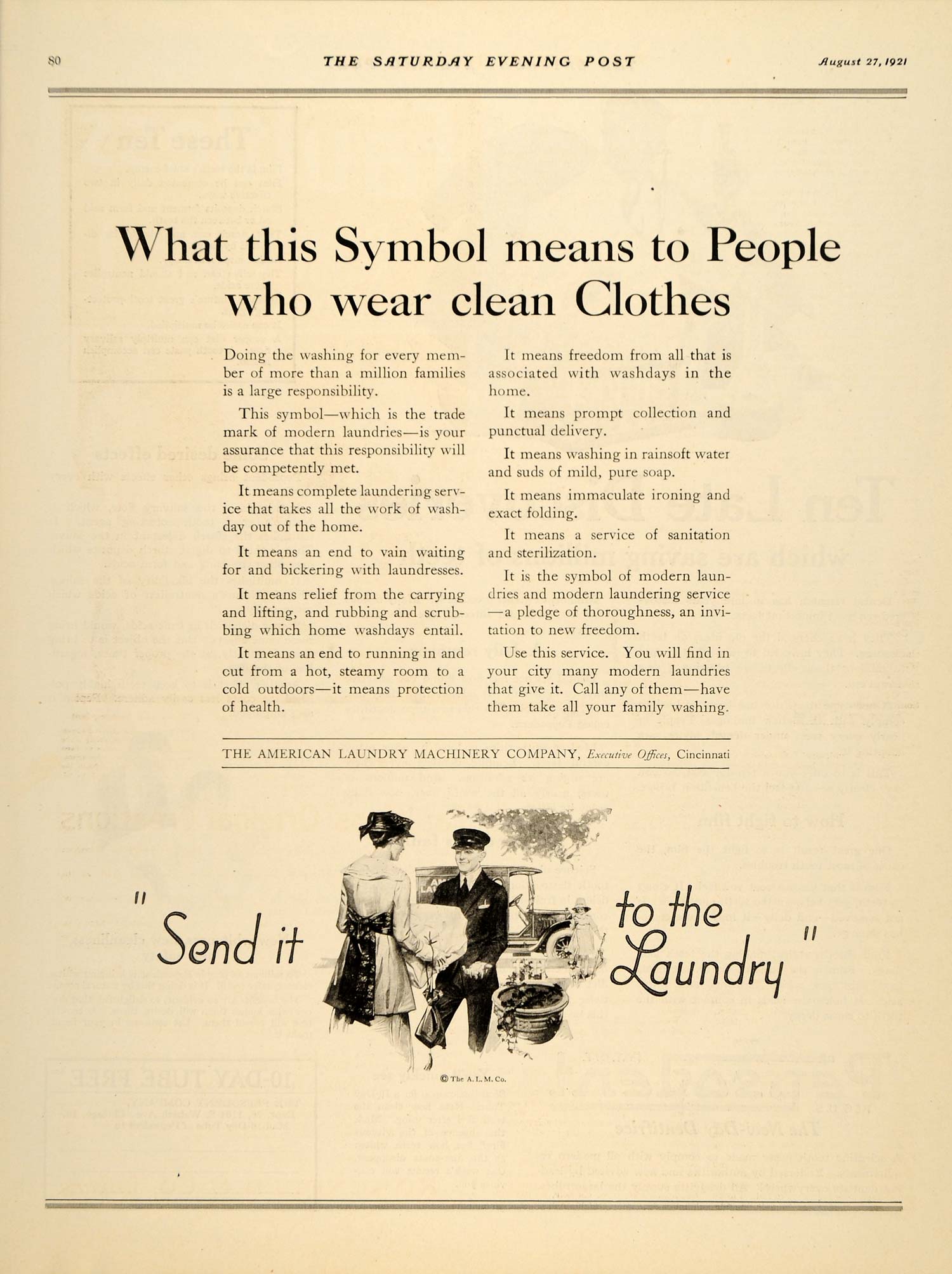This is an original 1921 black and white print ad for The American Laundry Machinery Company.