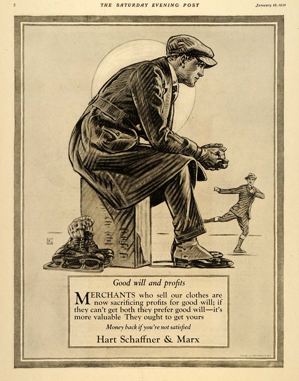 This is an original 1921 black and white print ad for clothes by Hart Schaffner & Marx Clothes.