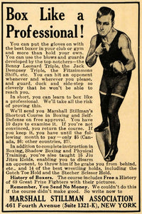 This is an original 1921 black and white print ad for Marshall Stillman's booklet on how to Box like a professional.